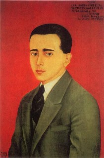 retrato del novio de Frida, Alejandro Arias. Estaba pintado en el estilo